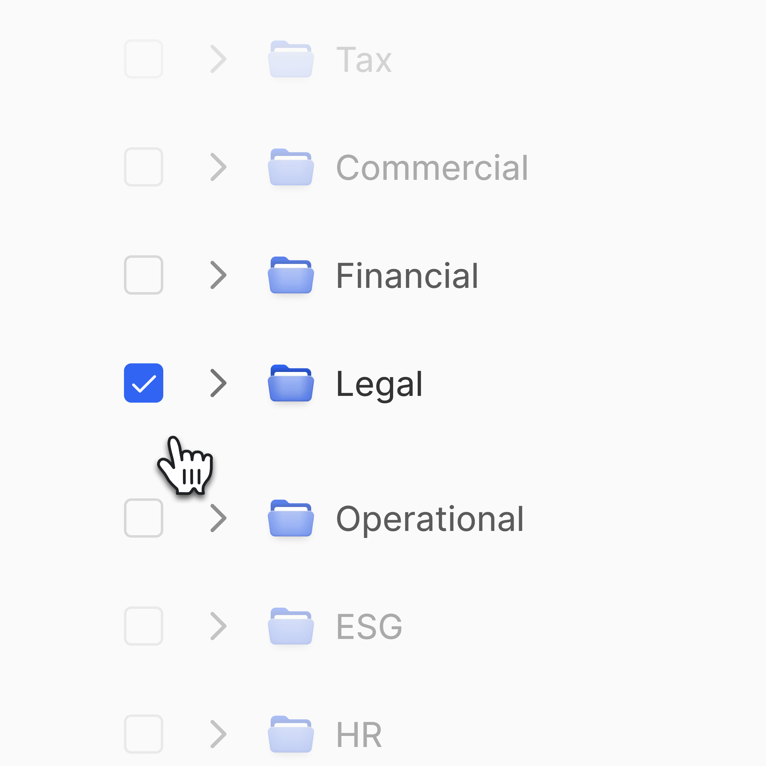 Select the folders from the data room you want to analyze.